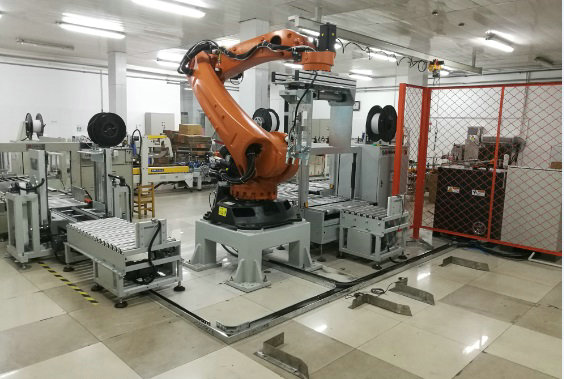 将产品通过进料输送带输送进料,机器人及夹具到产品上方,抓取产品后移动到栈板位,按事先输入的国产麻豆精品久久形式进行产品码放。