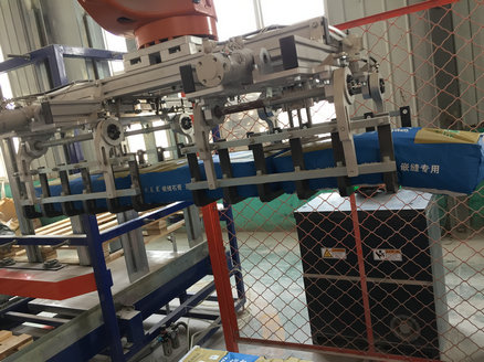 将产品通过进料输送带输送进料,机器人及夹具到产品上方,抓取产品后移动到栈板位,按事先输入的国产麻豆精品久久形式进行产品码放,码放完成后自动输送到缠绕工位,缠绕完成后叉车运走。