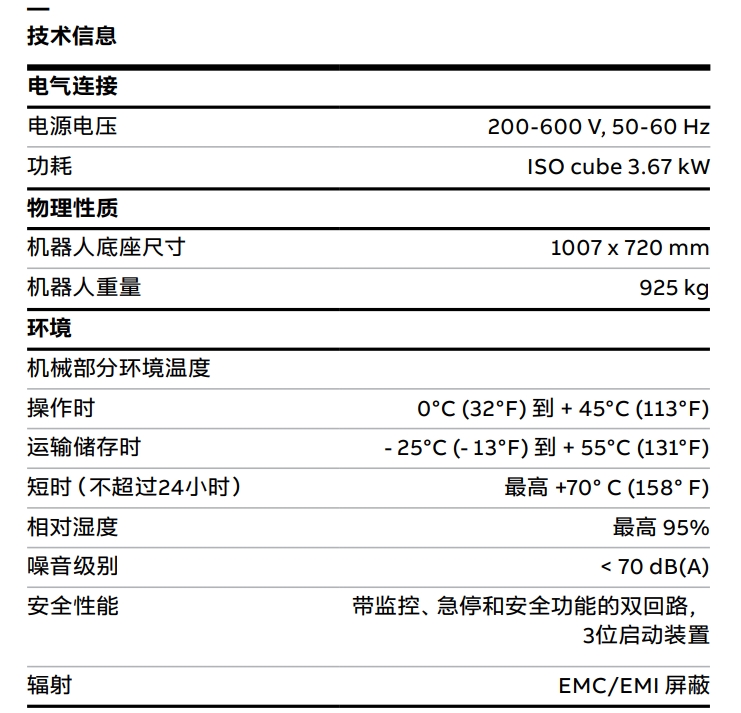 IRB 460 结构刚稳,设计可靠,正常运行时间长,维护成本低。该机器人配备集成式工艺线缆,可减轻磨损,延长使用寿命。ABB 还提供 RoboCare 三年质保计划,在不额外增加成本的前提下,确保生产无忧。该计划包含 ABB无线远程服务,由 ABB 专家监测机器人状态并提供相应的优化维护建议,进一步提高生产效率。